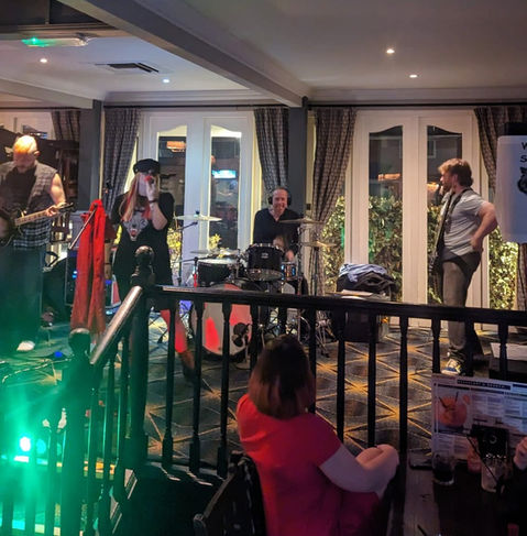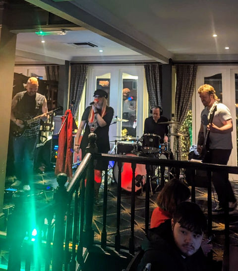 We have had the pleasure of performing locally in Caerphilly with gigs at the Piccadilly Pub, The Green Lady, Cwrt Rawlin, The Railway, as well as across venues in South Wales such as The Dolls House, The Hanbury, The Moggridge, Fuel, Jacs, etc. and The Horseshoe in South West England. We have raised funds for charities: Asthma UK and Wales Ape & Monkey Sanctuary. It brings us great joy to help good causes through the medium of music and we are appreciative of donations made. We have achieved organising ticketed charity events, such as the Rock Charity Event 30th April 2022, Caerphilly Workmen's Hall, with special guests, Celts, and at Fuel Rock Club, 7th April 2023 with Baby Blue UK. We participate in 'Party in The Picc' charity ticketed event annually, have appeared at Merthyr's Lollapalooza festival on New Year's Day 2023, The Little Cheese, Caerphilly, 2023, and Blackwood Cider Festival 2024.